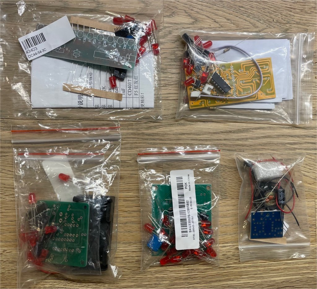 For at vække interesse for elektronik-området hos børnebørnene er der hjemkøbt en stribe “Kina-byggesæt”. Det er restoplaget af disse indkøb, der findes herunder.