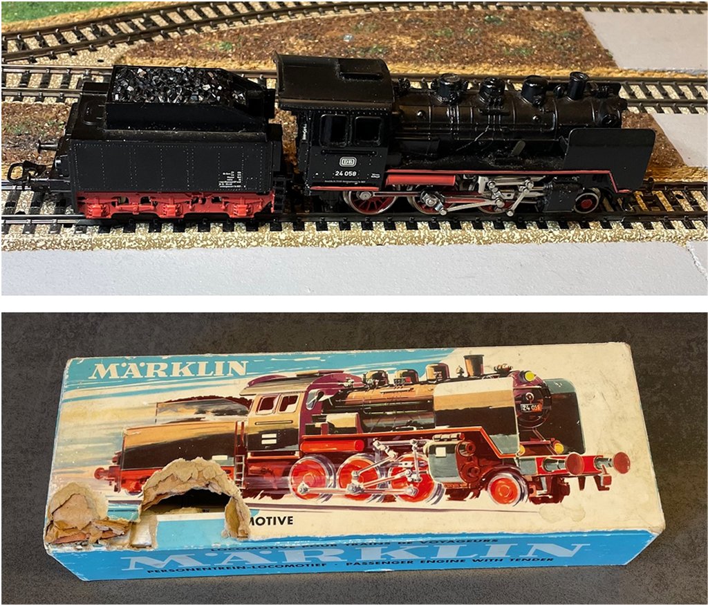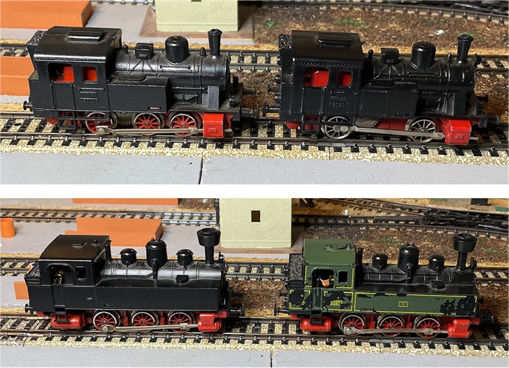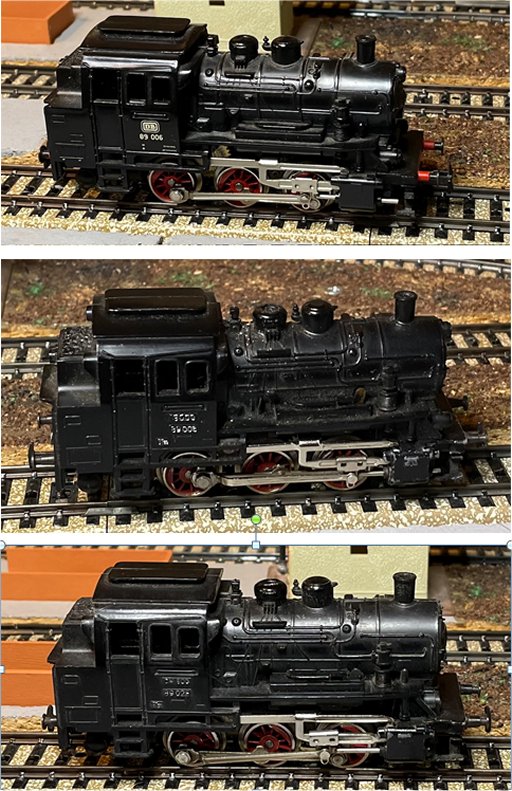 Märklin nr. 3090 og 3087 – analoge – kører og skifter. Afskalning af grøn farve.