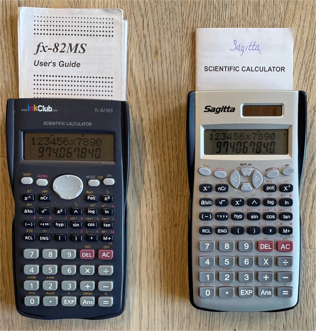 Lommeregnerne er grundlæggende ens og bygger på Casio fx-82MS.